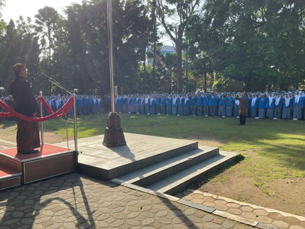 Surakarta – Upacara hari senin pagi tadi terasa begitu istimewa, karena tidak hanya sekedar pelaksanaan upacara hari senin sebagai pelaksanaan agenda rutin saja akan tetapi sekaligus penobatan Duta Baca perpustakaan Wijang SMK Negeri 6 Surakarta yang juga bertepatan dengan hari Literasi Internasional, 8 September 2025.