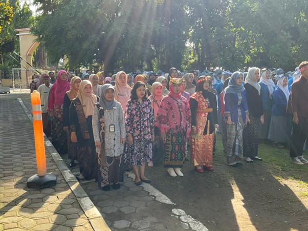 Upacara diikuti oleh semua civitas akademik. Guru dan karyawan rapi dalam balutan pakaian adat tradisional, sedangkan siswa rapi dengan pakaian osisnya.